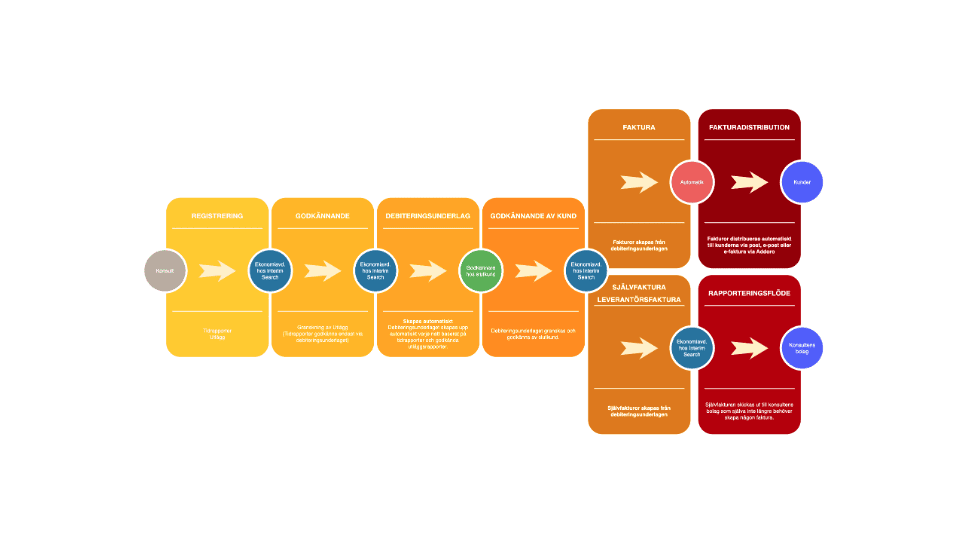Tidrapportering, utlägg och fakturering automatiseras och minskar administrationen.